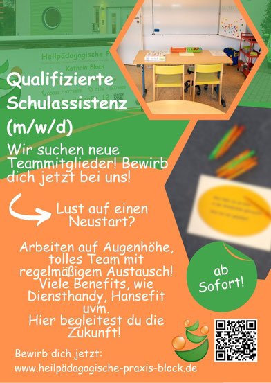 Wir suchen neue Teammitglieder (m/w/d) im Bereich der Schulassistenz.